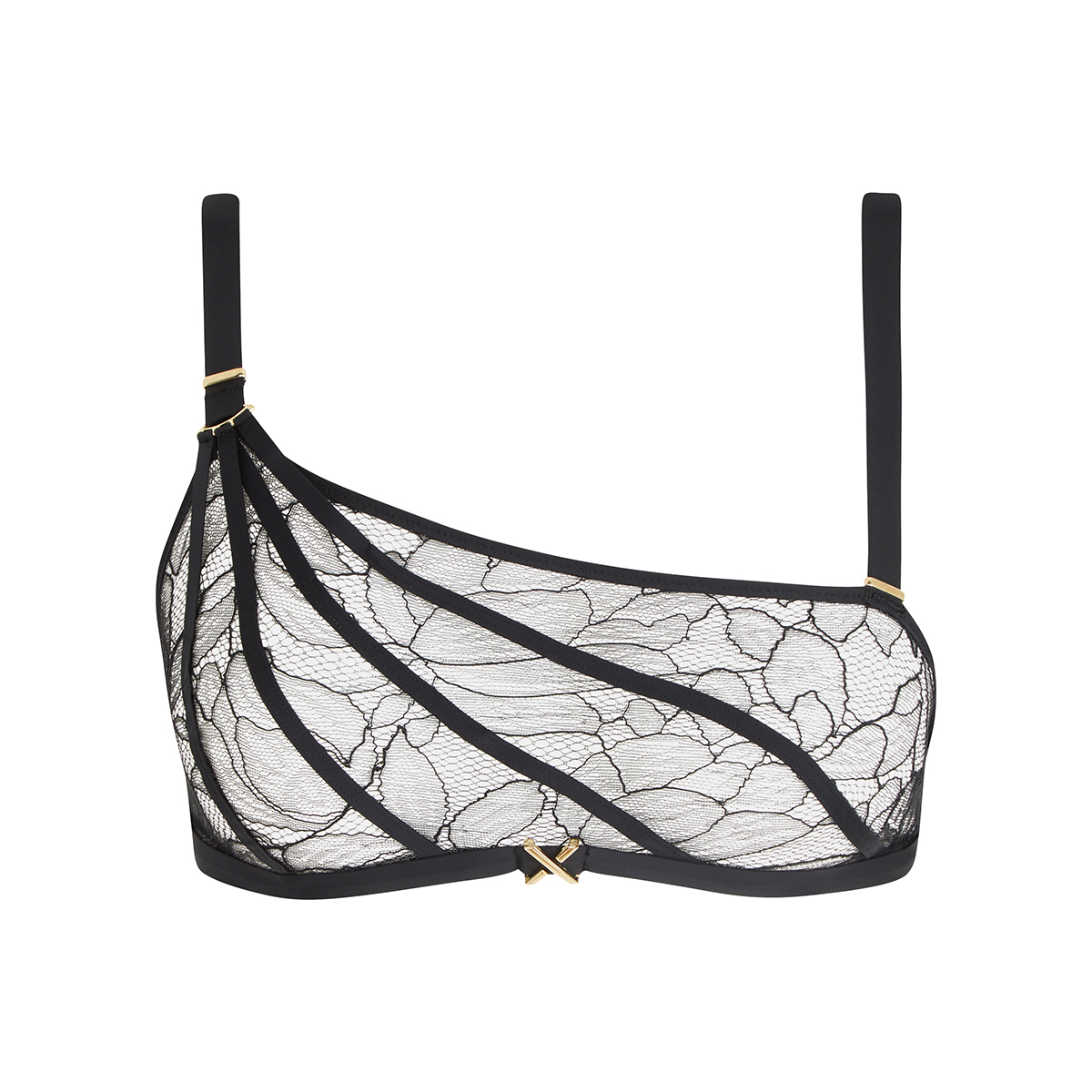 Изящный прозрачный бюстгальтер-топ без косточек сочетает в себе лёгкость, комфорт и соблазнительную утончённость. Выполнен из нежного цветочного кружева в дуэте с мелкой сеткой. Переднюю панель украшают элегантные тонкие ремешки и золотой логотип в виде буквы «Х». Задняя панель с одинарной застёжкой-крючком обеспечивает удобную посадку, а регулируемые несъёмные бретели позволяют подобрать идеальную высоту и комфорт.