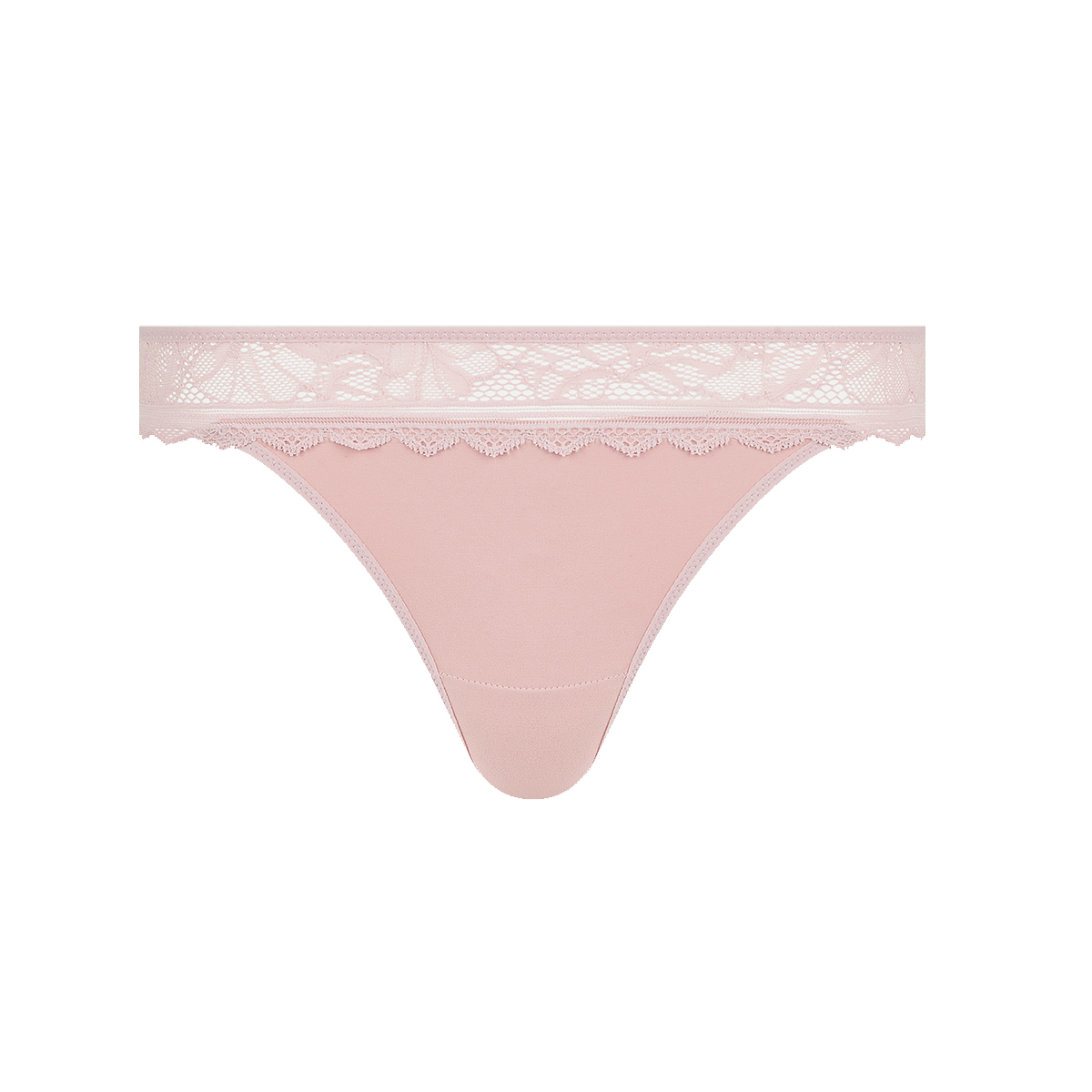 Трусы - стринги со средне-заниженной посадкой. Передняя панель выполнена из непрозрачной микрофибры и дополнена кружевом; задняя - из кружева с цветочным орнаментом.