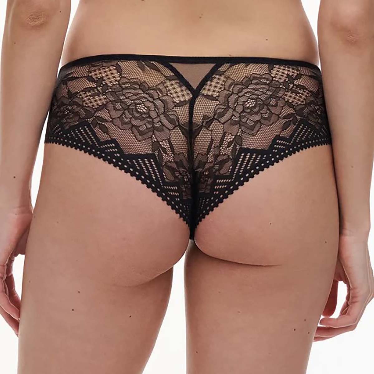 Трусы-боксеры со средне-заниженной посадкой выполнены из мягкого и приятного метериала. Передняя панель украшена геометрическим орнаментом и золотым логотипом Chantelle, задняя и боковые панели выполнены из кружева с нежной цветочной вышивкой, нижний край декорирован сеткой.