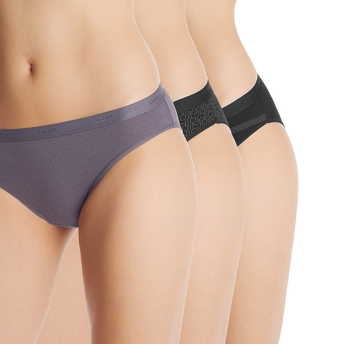 Набор из трех трусиков разных цветов. Нежный хлопок и мягкий комфортный пояс с логотипом "Dim". Плоская эластичная отделка. Комфорт в течение всего дня. Прекрасный подарок для себя и своих близких.