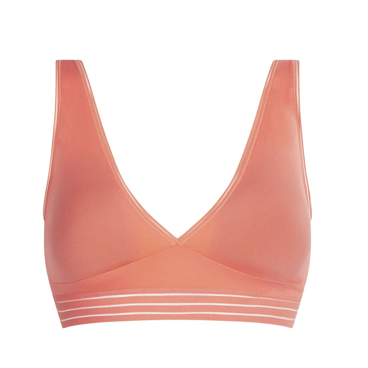 Бюстгальтер - треугольник без косточек и без застежки. Выполнен из мягкой и эластичной микрофибры. Чашки - с вынимающимися подушками. V-образная форма декольте.