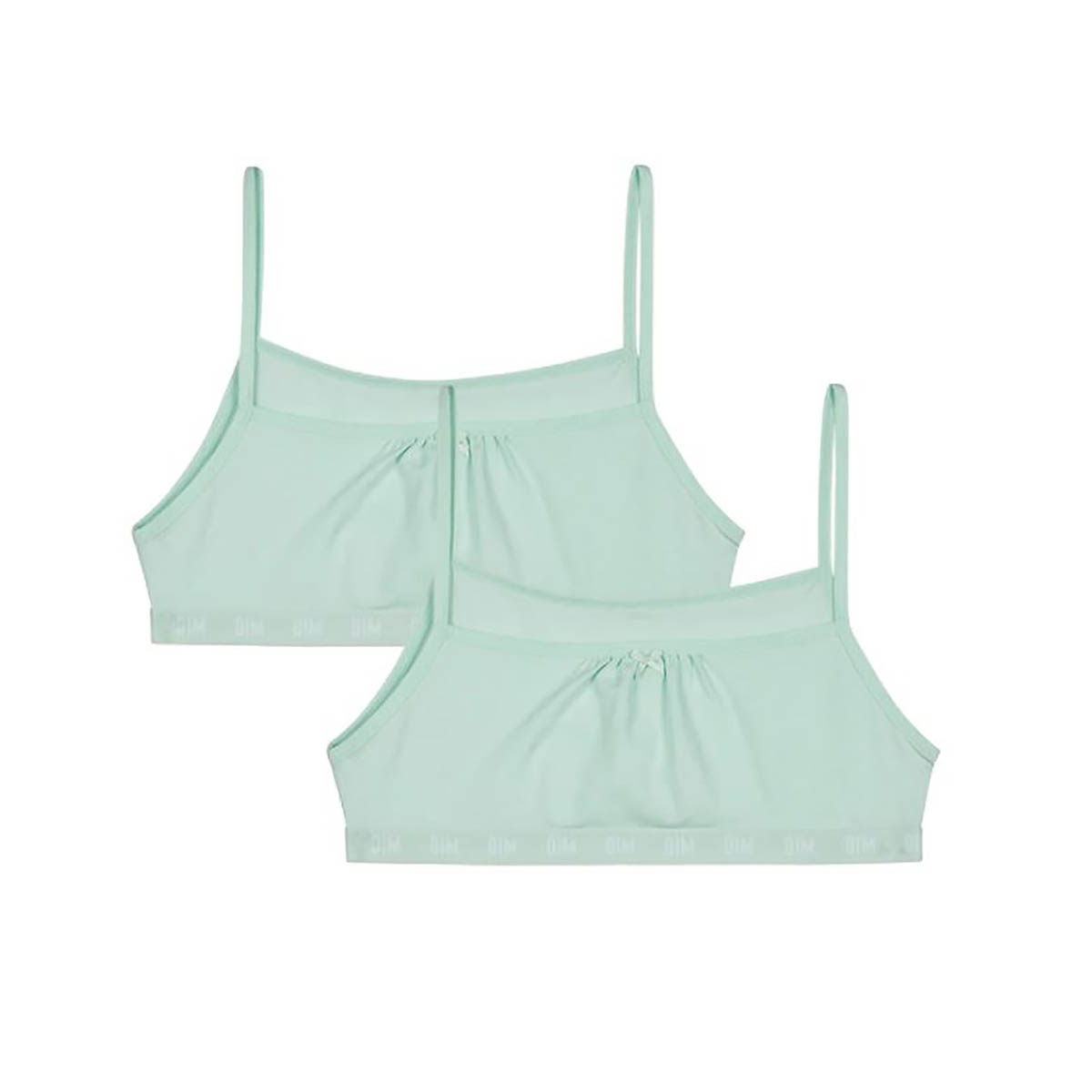 Набор из двух детских топов без косточек, из органического хлопка. Эластичная резинка под грудью обеспечивает поддержку. Модель спортивного стиля с тонкими бретелями. Декорирована бантиком на передней панели.