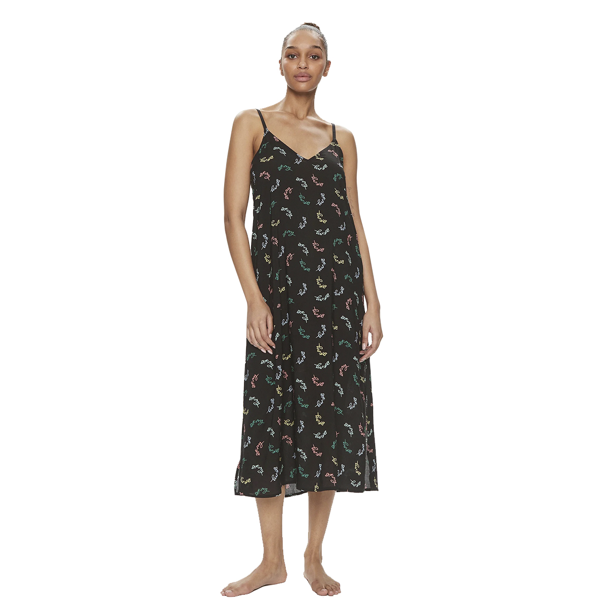 Длинная комбинация свободного кроя с V-образным вырезом, на тонких регулирующихся бретелях. Выполнена из "струящейся" вискозы. Разрезы - по бокам.