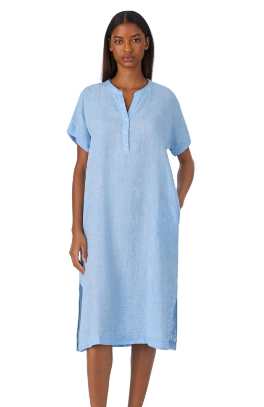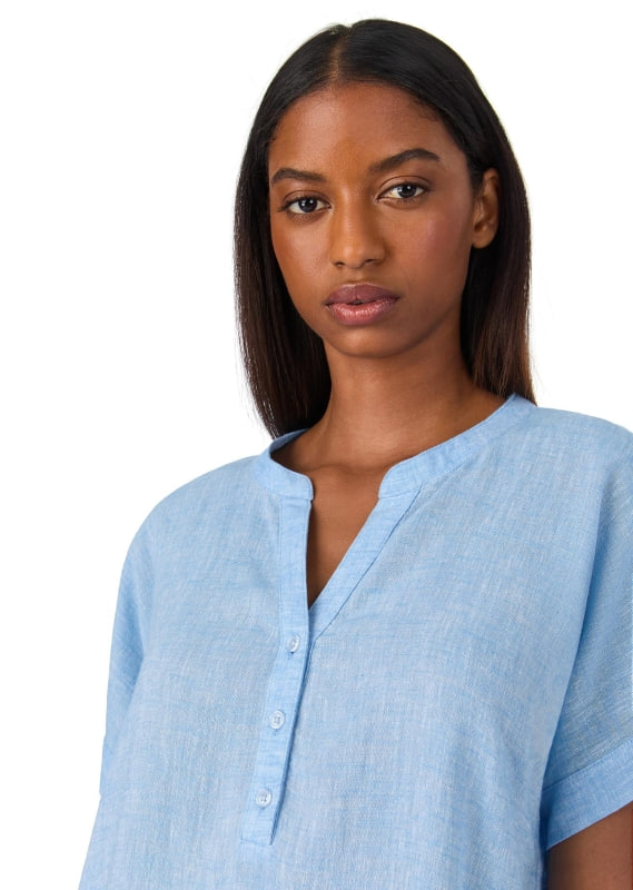 Удлинённая рубашка с короткими свободными рукавами и пуговицами в зоне декольте сочетает в себе стиль и удобство. Выполненная из мягкого, дышащего материала, модель обеспечивает комфорт в любое время суток. Небольшие боковые разрезы придают лёгкость и свободу движений.