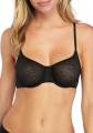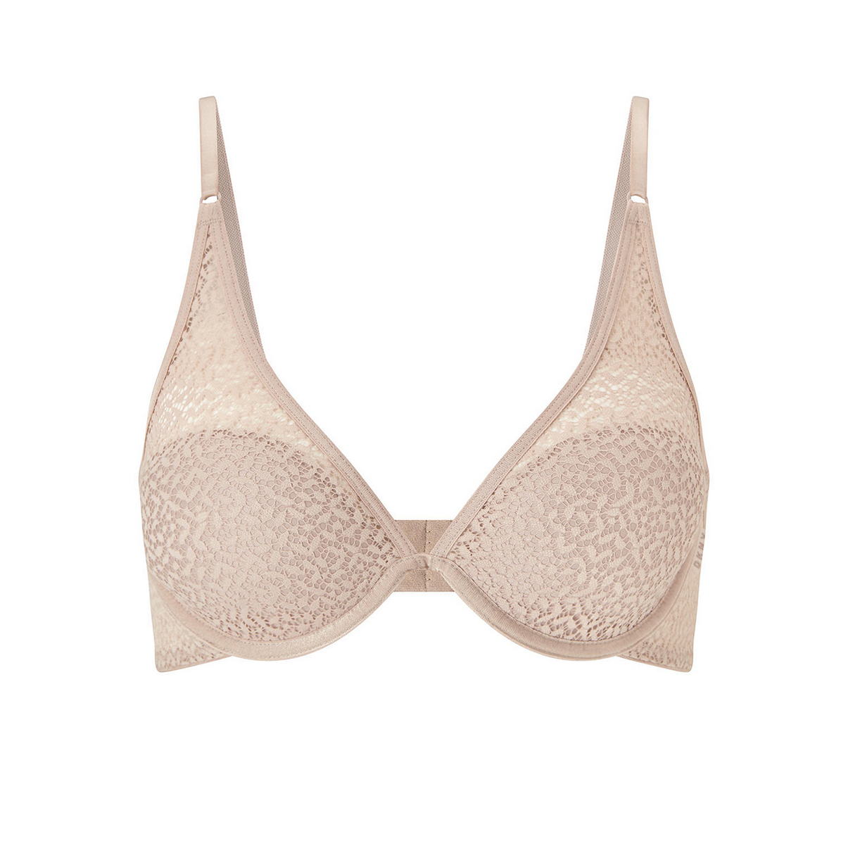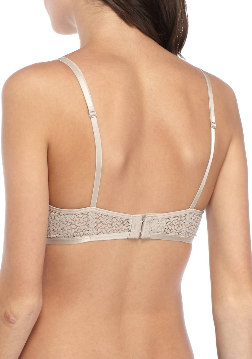 Бюстгальтер-треугольник со слегка уплотненной формой чашек. На косточках. Чашки покрыты кружевом. Узкая центральная панель. Глубокое декольте. Боковые и задняя панели по-нижнему краю отделаны эластичной тесьмой. Регулирующиеся бретели.