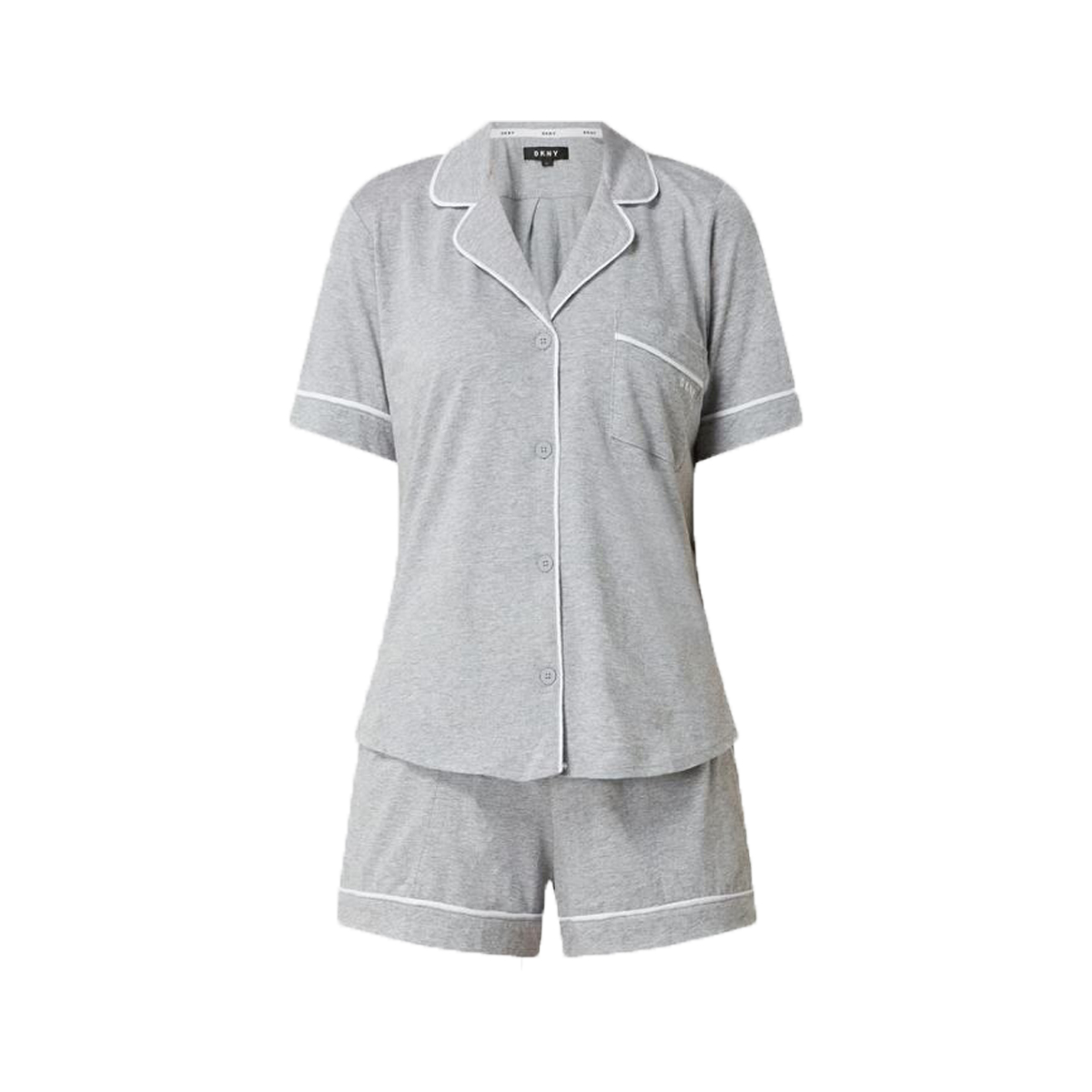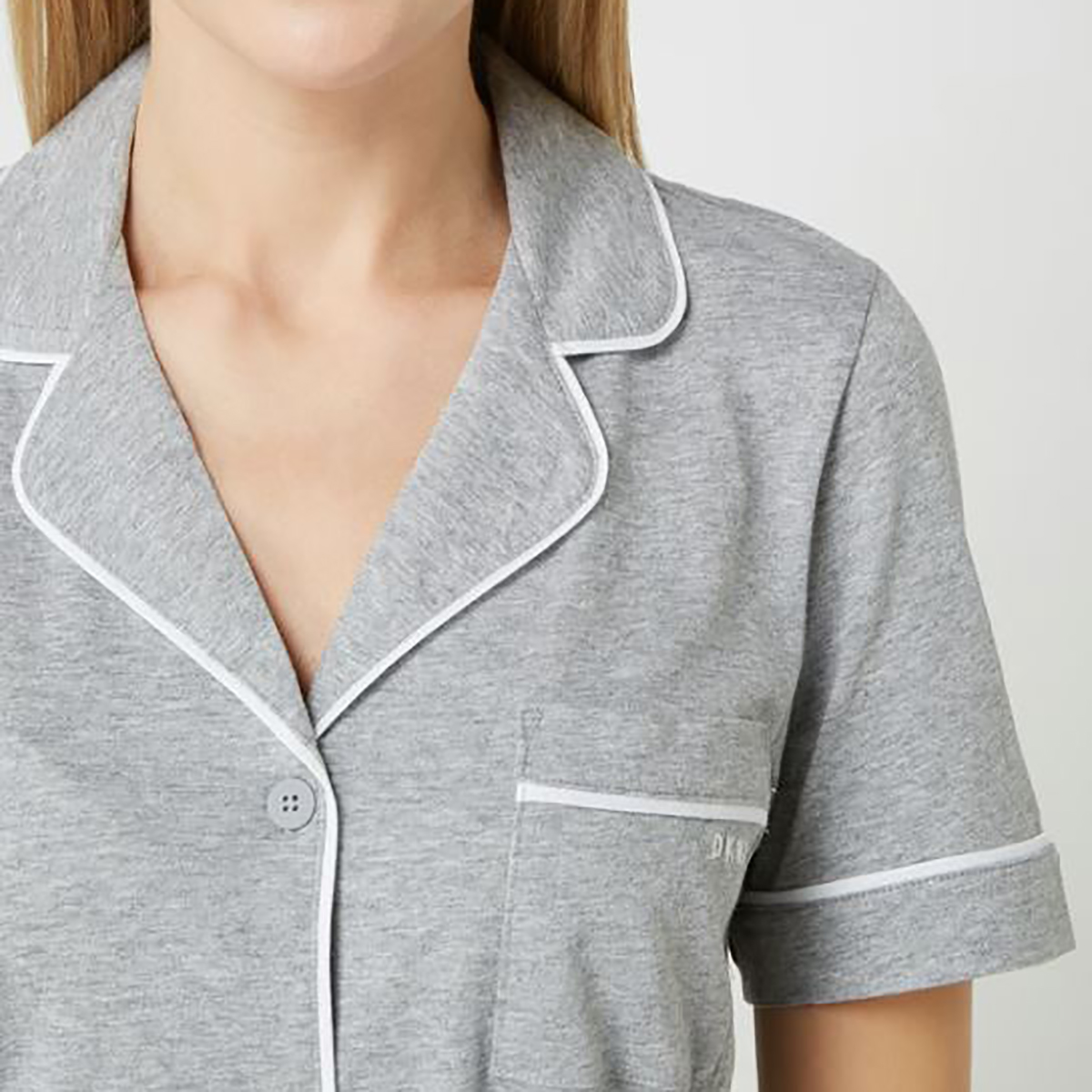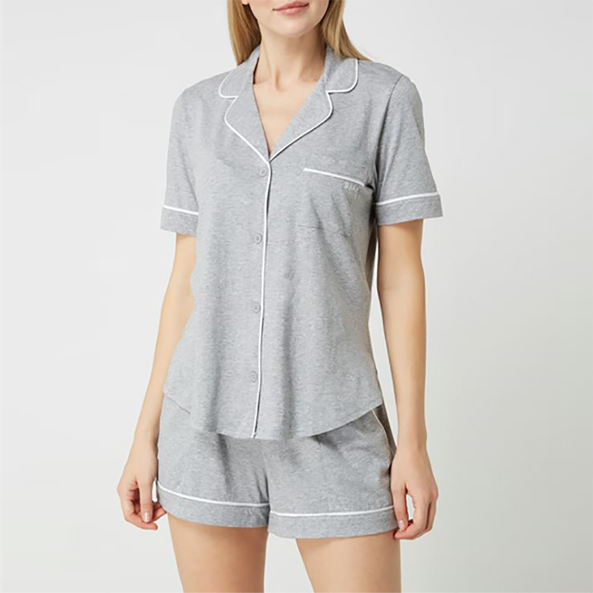 Классическая пижама: шорты с жакетом свободного кроя. Жакет с короткими рукавами, на пуговицах. Дополнен изящным отворотом и нагрудным карманом. Удобные шорты с поясом на шнурке и практичными боковыми карманами.