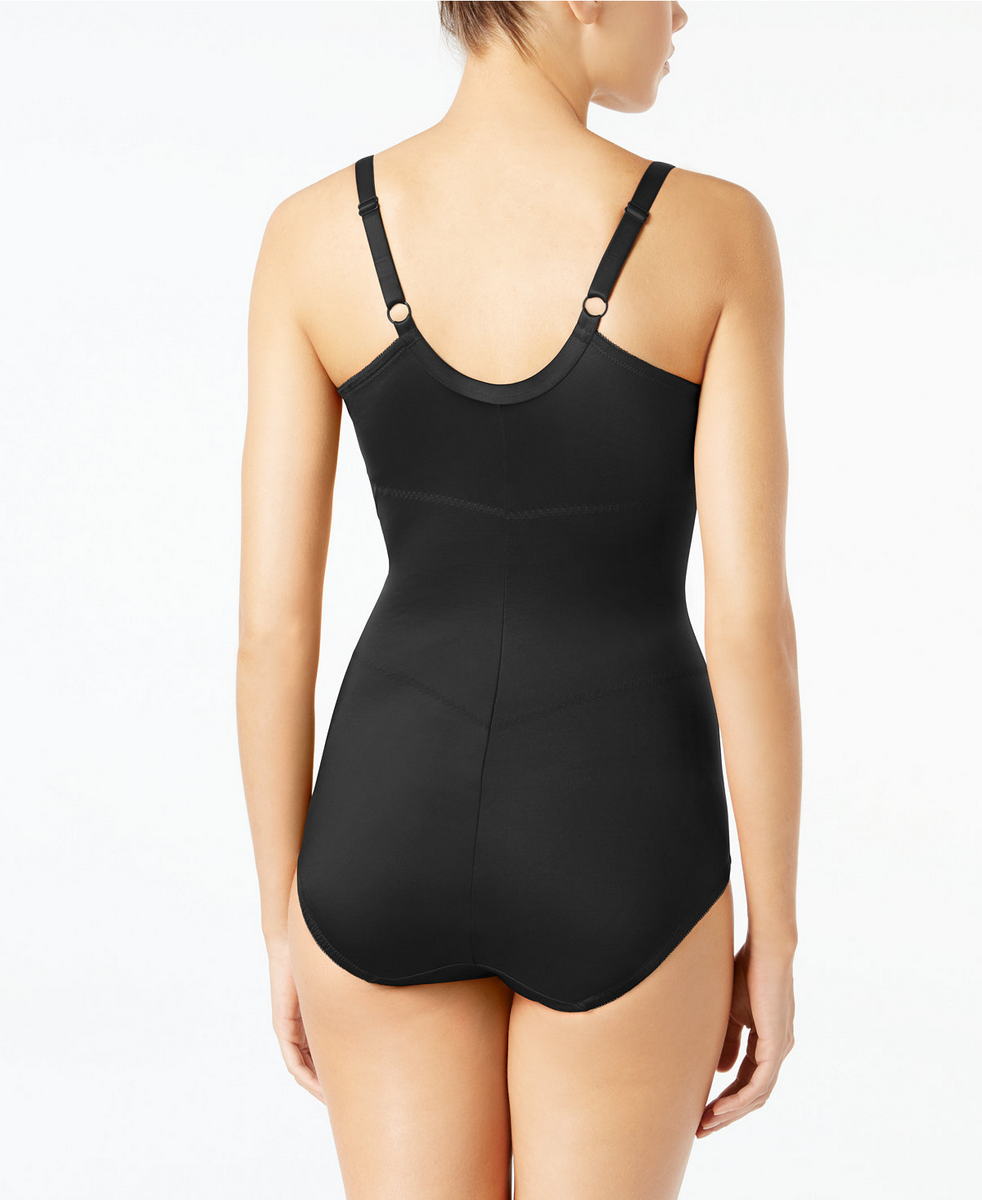 Боди с мягкой формой чашек на косточках. Чашки состоят их трех частей: нижняя часть из плотного практически не эластичного материала, верхняя - из кружева, боковая - переходящая в бретель - также из плотого не эластичного материала, чтобы сгладить неровности в области подмышек. Передняя панель полностью дублирована для визуальной коррекции, задняя - дублирована по линии талии. Регулирующиеся бретели. Застежка между ног на крючках. Хлопковая ластовица.
