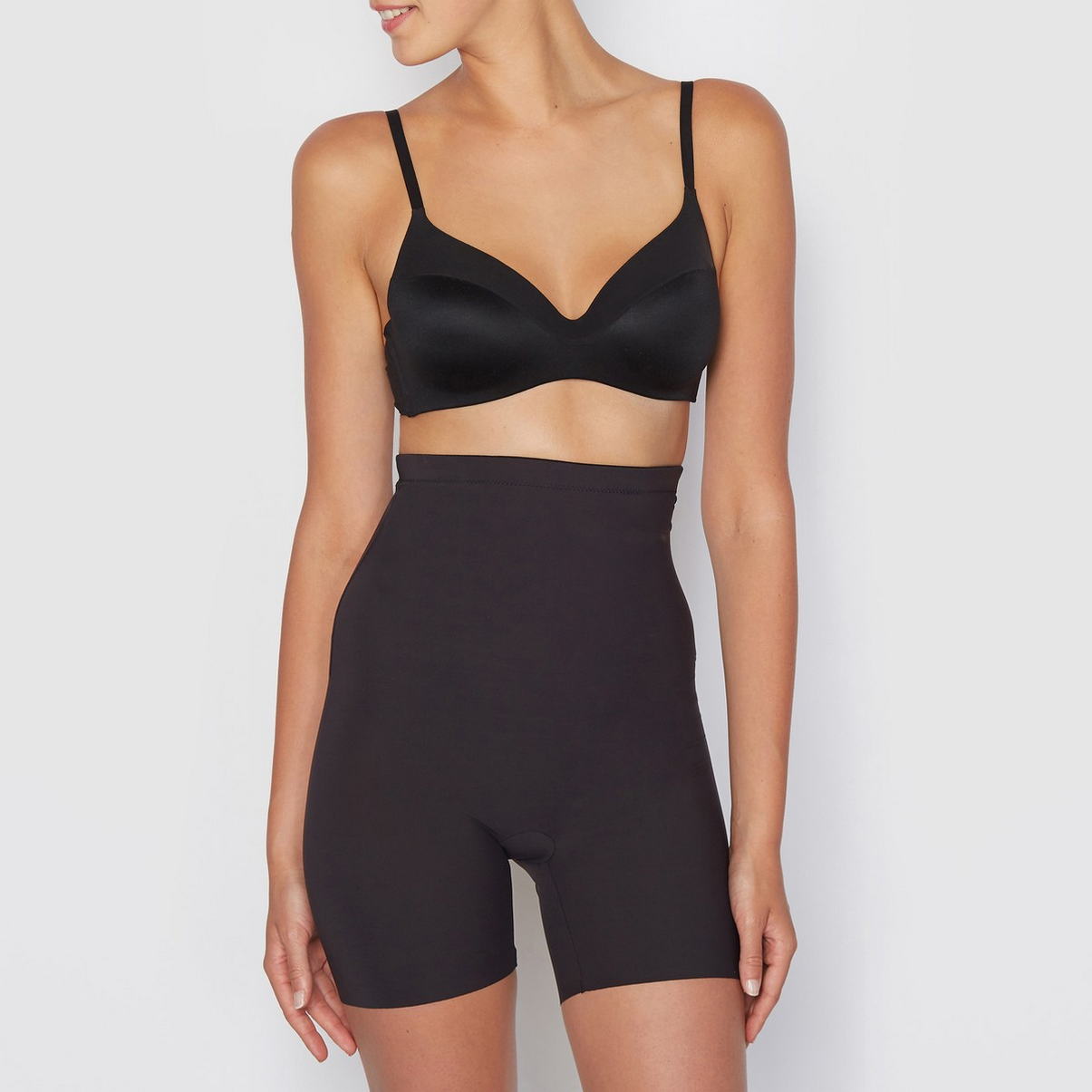 Панталоны с высокой талией выполнены из "невесомой" микрофибры и предназначены для визуальной коррекции области талии, бедер и ног. Бесшовная передняя панель в области талии и живота дублирована для достижения необходимого эффекта; задняя панель дублирована по линии талии. Пояс по всей окружности дублирован плотной широкой тесьмой с силиконовой дорожкой. Хлопковая ластовица. "Необработанный" нижний край ног.