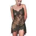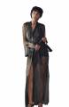 Длинная приталенная комбинация выполнена из блестящего шелка, который плавно струится по силуэту, и изумительного кружева с утончённым цветочным орнаментом. Тонкие регулируемые бретели изящно переплетаются на открытой спинке, добавляя образу акцент романтики и лёгкой провокации. А аккуратные разрезы по боковым панелям придают модели грацию и свободу движений.