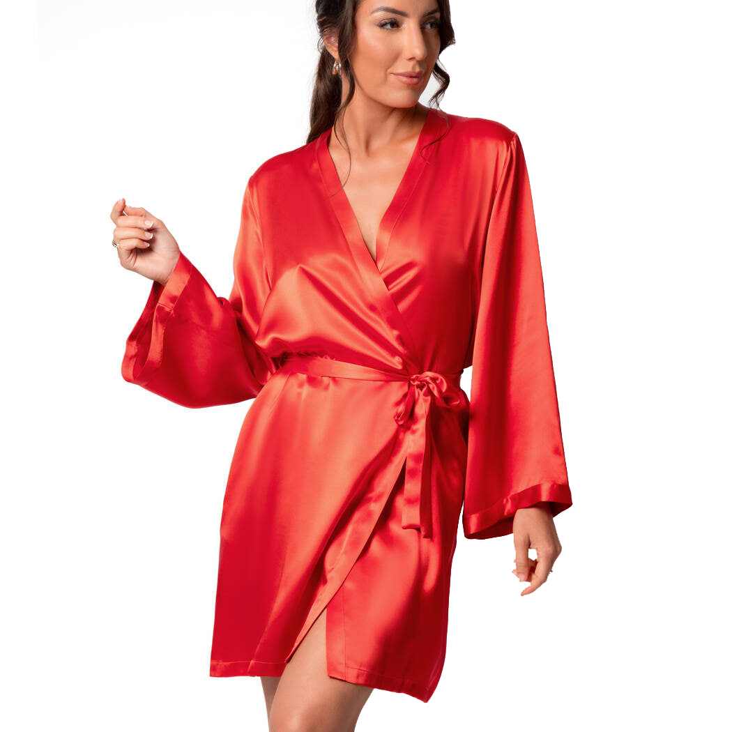 Короткий халат свободного кроя с длинными широкими рукавами, выполнен из 100% натурального шелка, который мягко струится по телу и дарит ощущение легкости. Съёмный пояс позволяет подчеркнуть талию и создать более женственный силуэт. Это изысканная и комфортная модель, идеально подходящая для утончённых домашних образов.