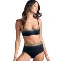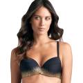Цельный купальник с уплотненной формой чашек на косточках. Чашки покрыты микрофиброй, которая быстро сохнет, а золотое напыление обладает защитой от пляжного воздействия. На чашках - три шва с зубчатыми краями, которые добавляют изящества и стиля. Регулирующиеся бретели отстегиваются. Передняя панель полностью дублирована для избежания прозрачности. Задняя панель, в области ягодиц, достаточно открытая.