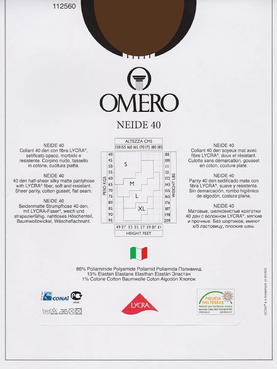Матовые, прозрачные колготки 40 ден, без шортиков, имеют х/б ластовицу,плоские швы.Благодаря использованию волокна LYCRA® и Tactel Duo опасность образования затяжек снижается до минимума.