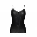 Майка на широких бретелях, выполнена из бесшовного трикотажного полотна. Пройма и декольте обрамлены кружевом. Низ оверлок.