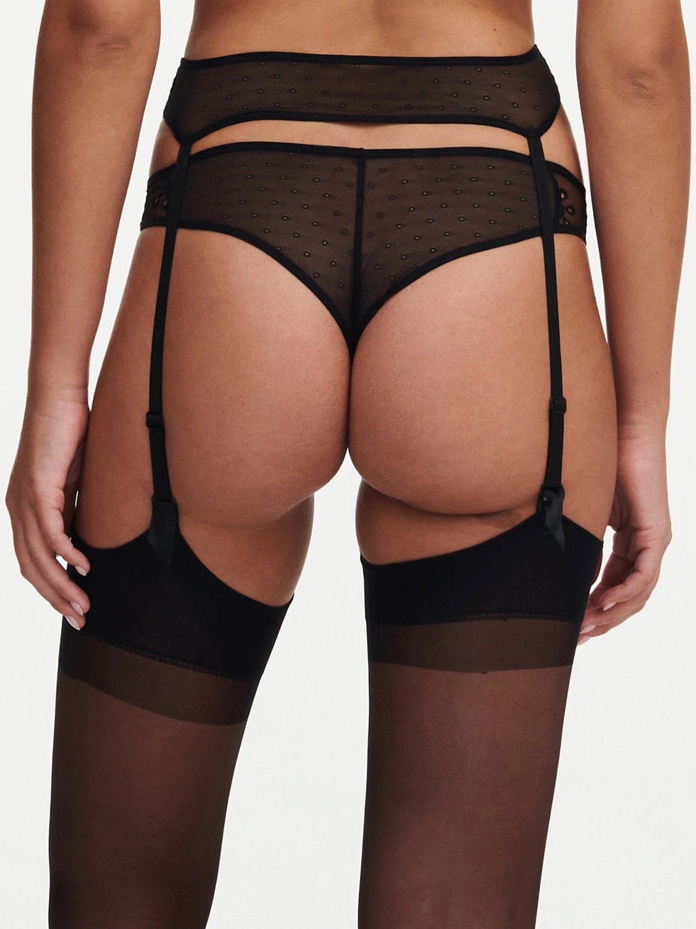 Пояс для чулок с 4-мя регулирующимися неотстегивающимися подтяжками. Передняя панель выполнена из роскошной и романтичной, неподвластной времени вышивкой в стиле Ришелье, задняя - из ажурного тюля. Застежка – на передней панели на крючках.