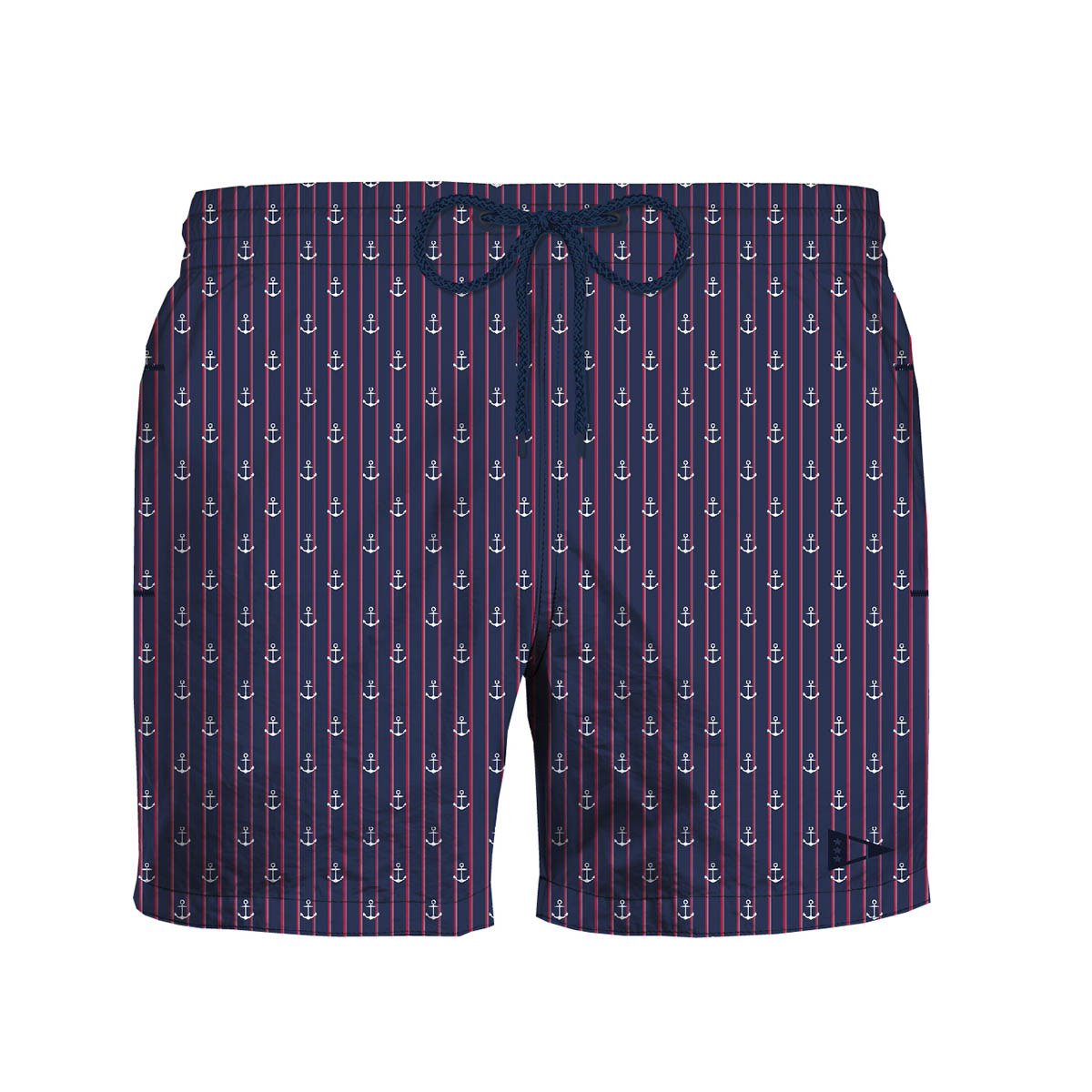 Купальные шорты, выполненные из высококачественного и быстросохнущего материала; материал обработан водоотталкивающими средствами, устойчивыми к хлору, соленой воде и с защитой от ультрафиолета. С внутренней стороны шорты оснащены сеткой из мягкого эластичного нейлона с антибактериальной обработкой. Два боковых кармана и один сзади.