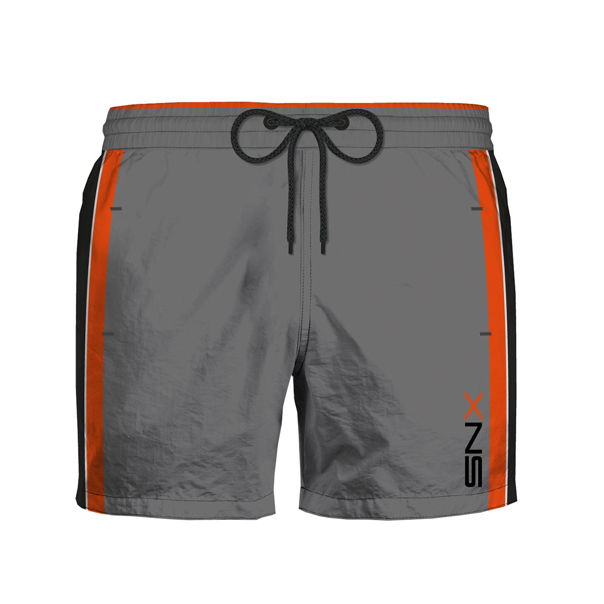 Купальные шорты, выполненные из высококачественного и быстросохнущего материала; материал обработан водоотталкивающими средствами, устойчивыми к хлору, соленой воде и с защитой от ультрафиолета. С внутренней стороны шорты оснащены сеткой из мягкого эластичного нейлона с антибактериальной обработкой. Два боковых кармана и один сзади.